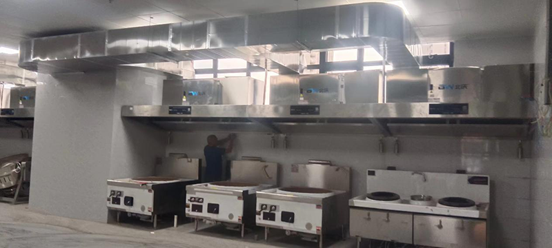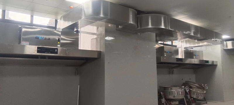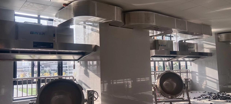 北沃基于有着出色的产品,强大的品牌感染力,丰富的大项目经验以及有效承诺的售后服务,在众多供应商中脱颖而出,根据学校食堂的规模和炉灶数量,合理确定油烟设备的处理风量,为学校定制一套完善的油烟解决方案,全面安装了北沃油烟净化一体烟罩。